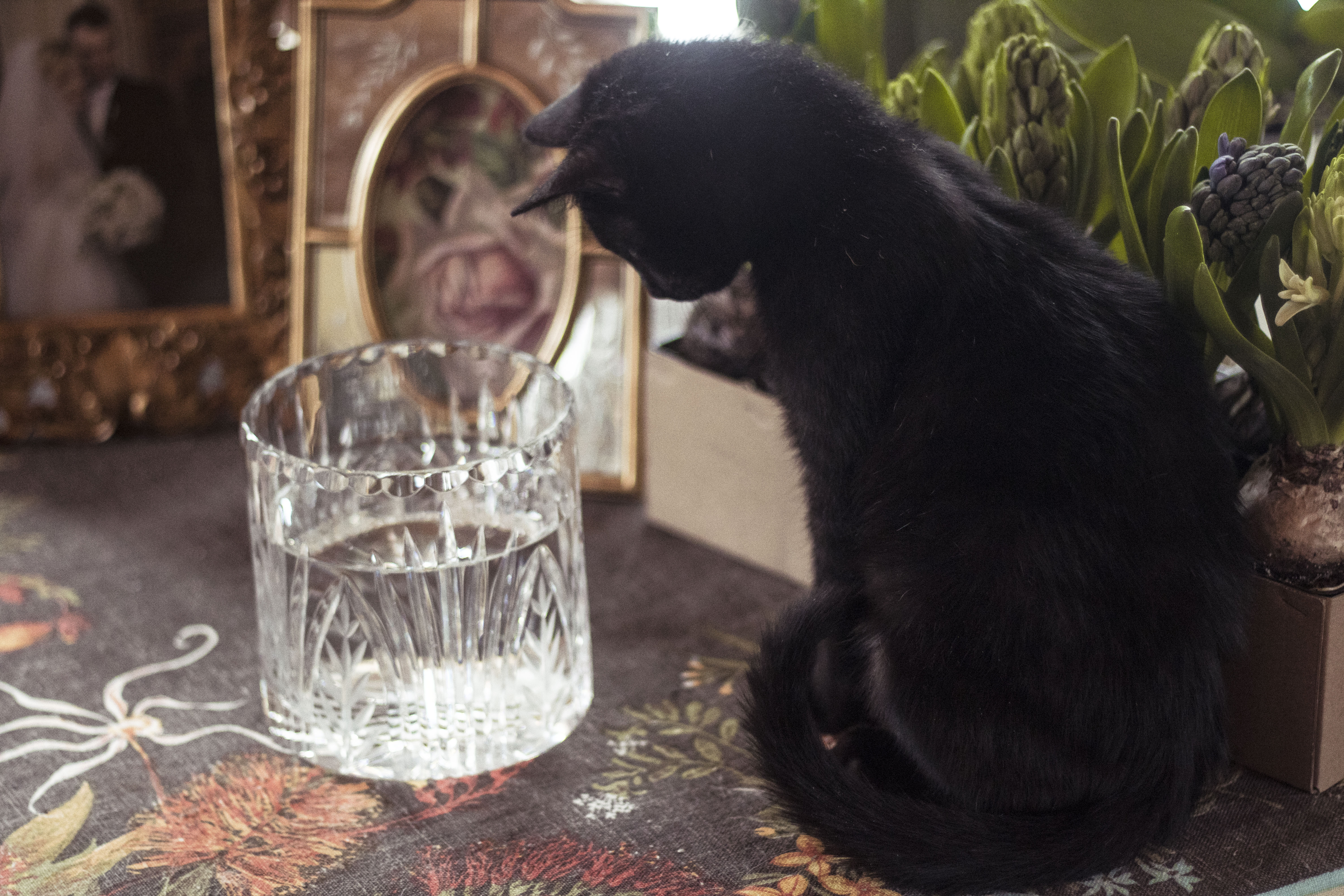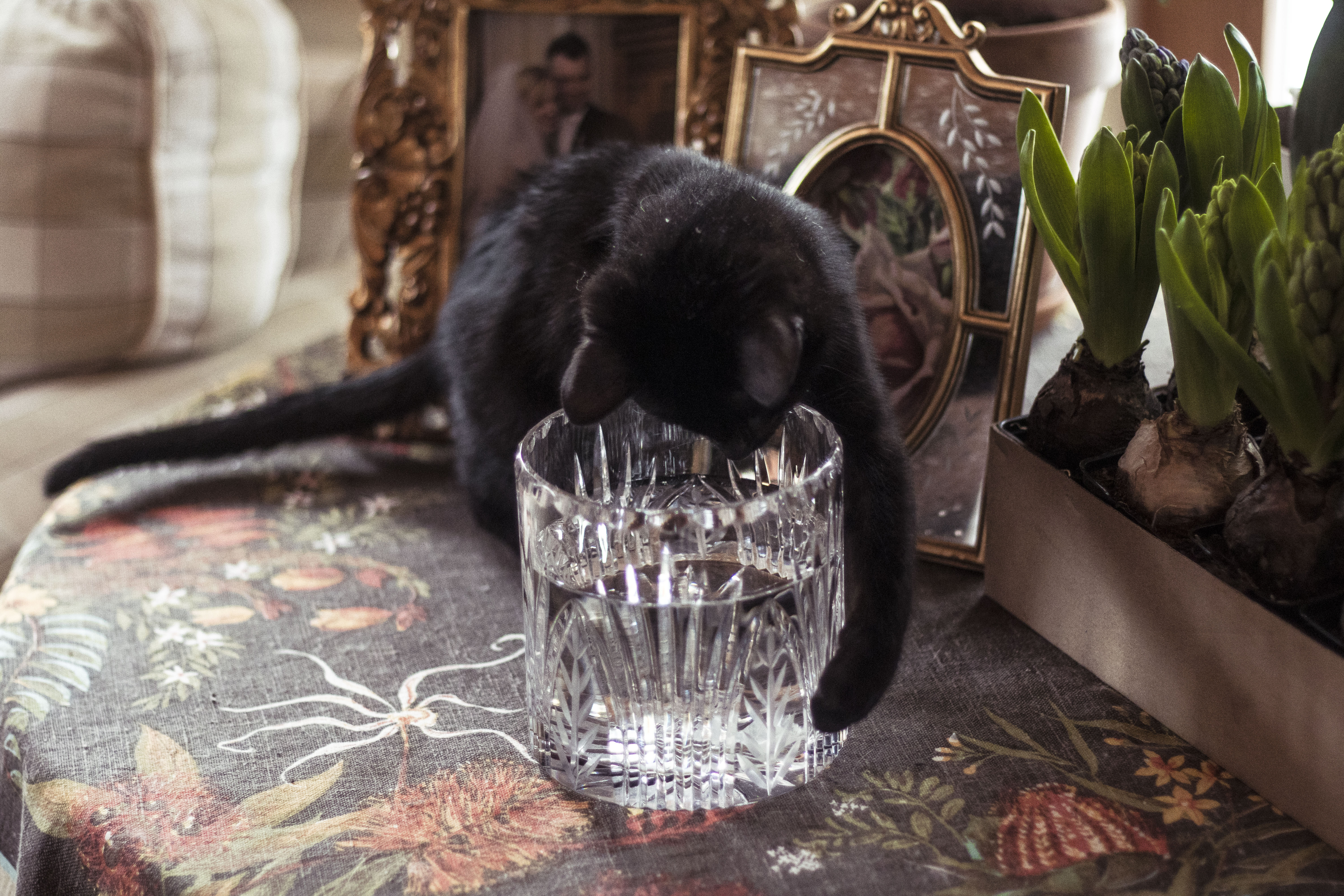 Wszystkie koty jakie znam lubią pić z dużych pojemników z wodą. Zawsze jak znajdą dostęp do akwarium czy dużej psiej miski, zawsze chętnie skorzystają. Dlatego moje koty mają swój… wazon. Co dwa dni zmieniam w nim wodę, żeby miały zawsze świeże picie. Ważne, żeby wazon nie był za wysoki, aby koty nie miały problemu z dostaniem się do wodopoju.