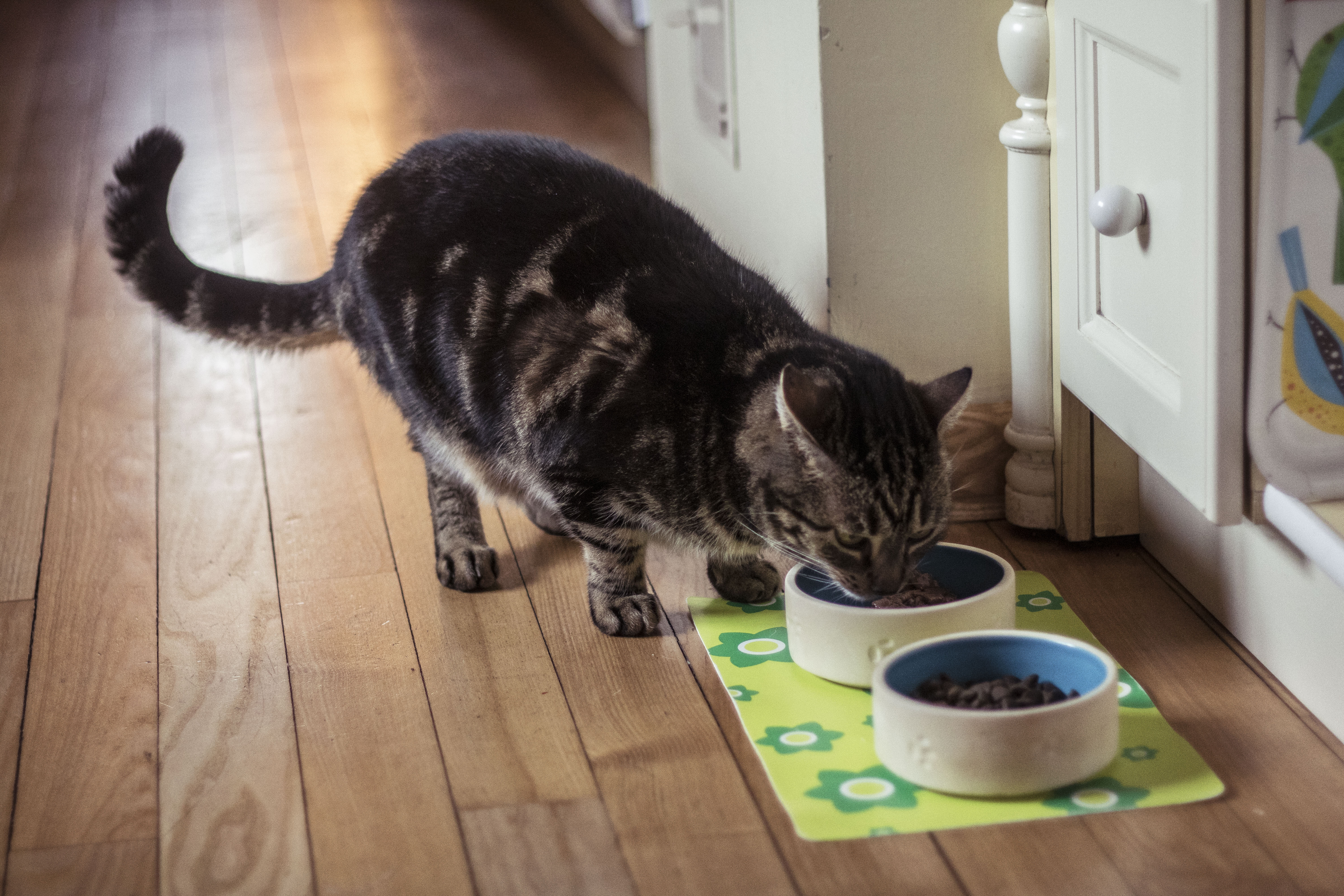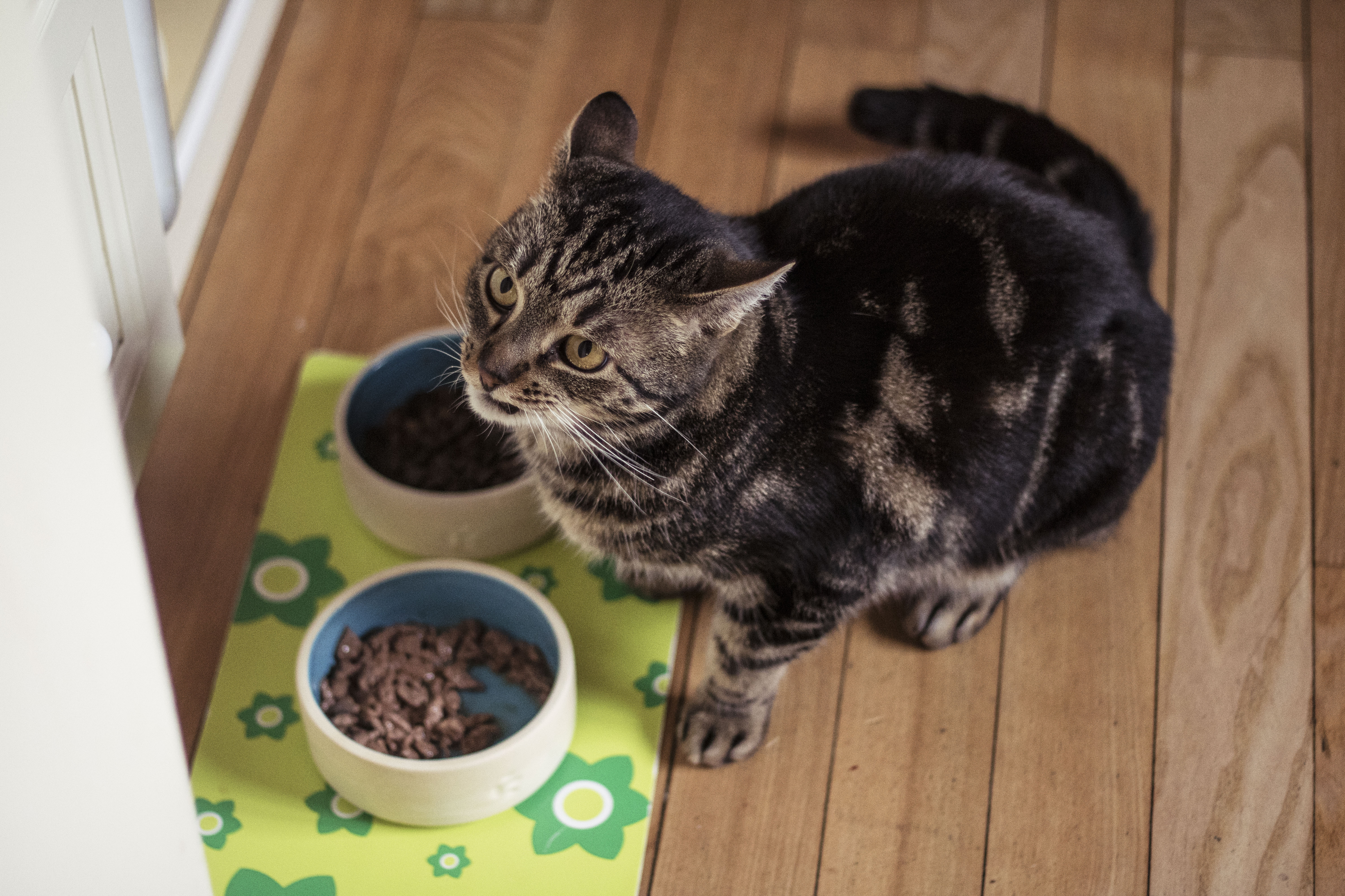 Nie wiem, jak Wasze zwierzaki, ale moje koty jedzą jak świnie. Jedzenie jest rozrzucone dookoła całej miski, dlatego kupiłam specjalną podkładkę, która zabezpiecza podłogę, bo o wiele łatwiej zmywa się zaschnięte resztki jedzenia z podkładki niż z podłogi. Jeśli nie znajdziecie wzoru, który Wam odpowiada, to możecie zawsze kupić taką plastikową podkładkę na stół i przyciąć ją do odpowiedniego rozmiaru.