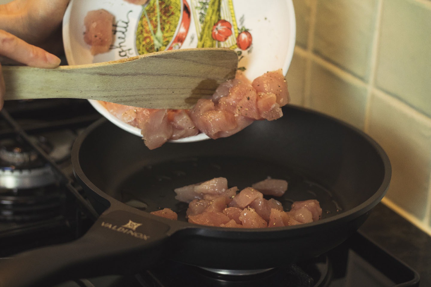 - polędwiczkę wieprzową pokrojoną w cienkie plasterki i usmażoną z pieprzem, chilli i rozmarynem