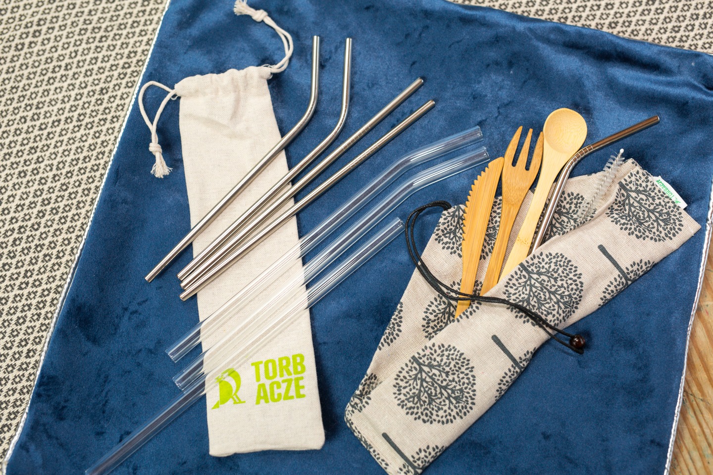 • słomki i plastikowe sztućce. Ich zastąpienie jest tak niekłopotliwe, że naprawdę nie widzę żadnego powodu by dalej ich używać. Został mi jakiś mały zapas papierowych słomek, ale mam też szklane (robią furorę wśród dzieci) oraz metalowe (od Torbaczy). Mam też cudowny zestaw sztućców do jedzenia na mieście (też torbaczowych). Są małe, lekkie, pięknie opakowane i można śmiało zabrać je ze sobą to torebki!