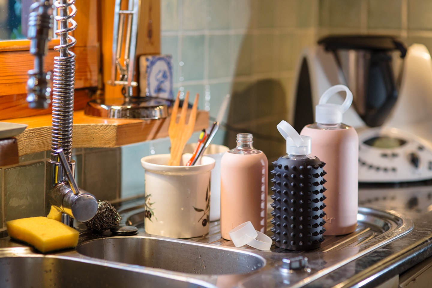 • picie wody „na mieście”. Niestety często w biegu kupowałam butelkę wody (najczęściej „z dziubkiem”, bo jest wygodna do picia w samochodzie) i produkowałam w ten sposób dziesiątki  – co prawda recyklingowanych – ale jednak śmieci tygodniowo. W tym roku kupiłam sobie naprawdę piękną, szklaną butelkę marki brk i wreszcie mam coś, co wygląda super i sprawdza się super. Butelka jest szklana, a zatem ciężka, nie jest to więc wygodne rozwiązanie dla kogoś, kto musi ją nosić pod ręką cały dzień. Ja mniejszą mam zawsze w torebce (jestem skłonna podźwigać trochę żeby pić ze szkła). Druga, większa jest zwykle ze mną w samochodzie lub na całodniowych zdjęciach. Oczywiście jeśli będę gdzieś w biegu i nie będę miała przy sobie swojej butelki, to może się zdarzyć, że kupię jednorazową, ale to będzie incydent, a nie zły nawyk. Poszukajcie cudnej butelki dla siebie, takiej, którą naprawdę polubicie i zmieńcie złe butelkowe nawyki na zawsze.