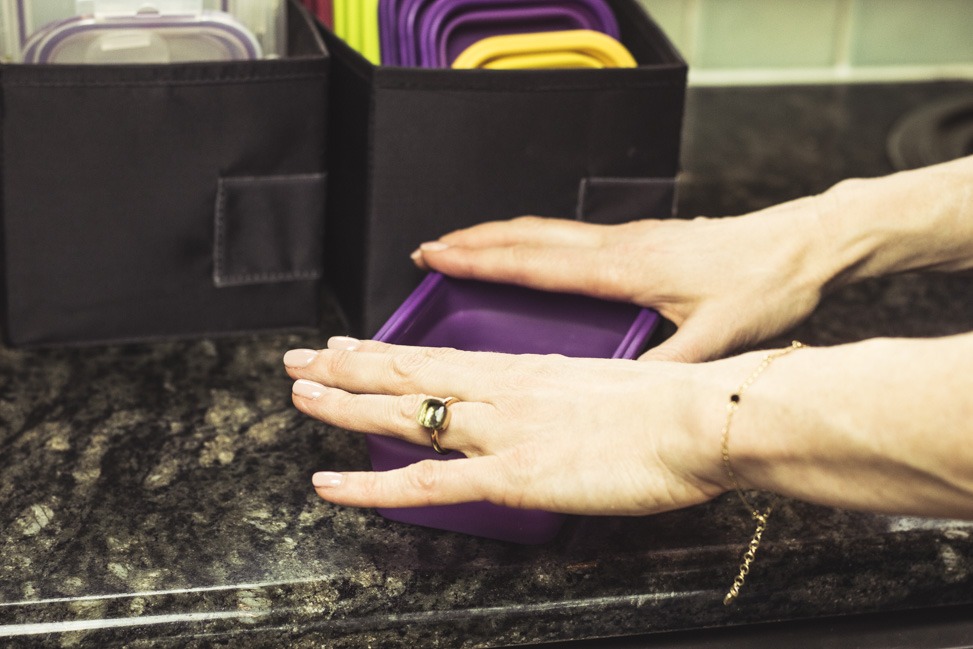 Aha! I jedna ważna sprawa: pojemniki – poza tymi największymi – nie powinny leżeć w szafce luzem. Zawsze warto umieścić je w pudełkach czy przegródkach, dzięki którym zawsze będą zawsze w porządku. Zwłaszcza małe pojemniki leżące luzem będą się rozwalać, spadać czyli… robić bałagan.