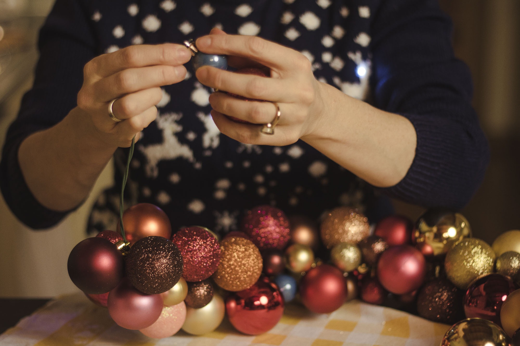 Opakowanie bombek w 3 różnych rozmiarach i wieszak z pralni może Wam załatwić temat dekoracji raz a dobrze. Jeszcze lepiej, jeśli tak jak ja macie drucik. Wystarczy nawlec bombki na drucik lub „rozpięty” i uformowany w kółko wieszak. Ważne, aby mocować na zmianę duże bombki i małe, które wypełnią miejsca między tymi większymi. Całość zajmie Wam nie więcej niż 10 minut. Wieniec możecie zawiesić w oknie, na drzwiach lub wykorzystać jako ozdobę dla świec.