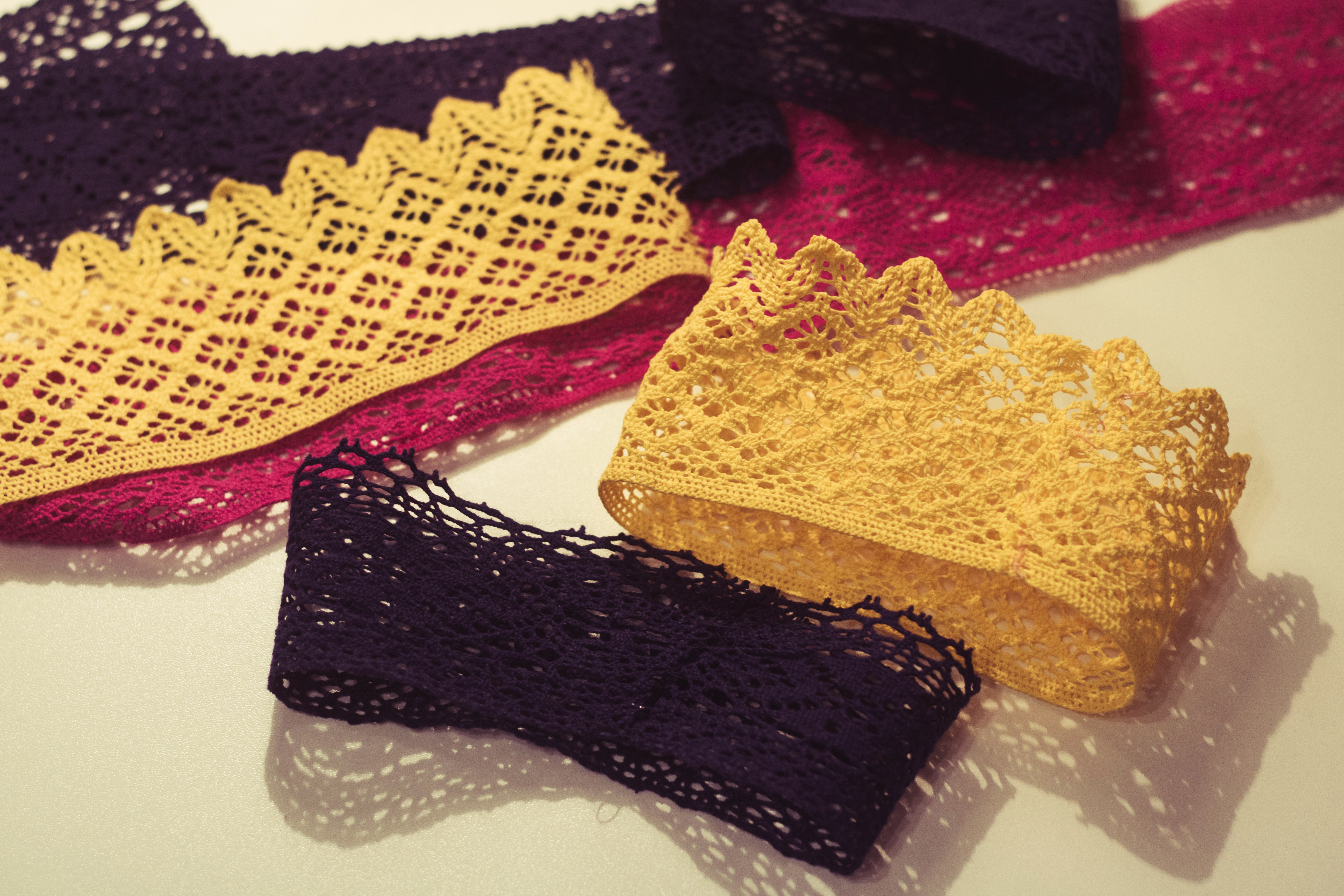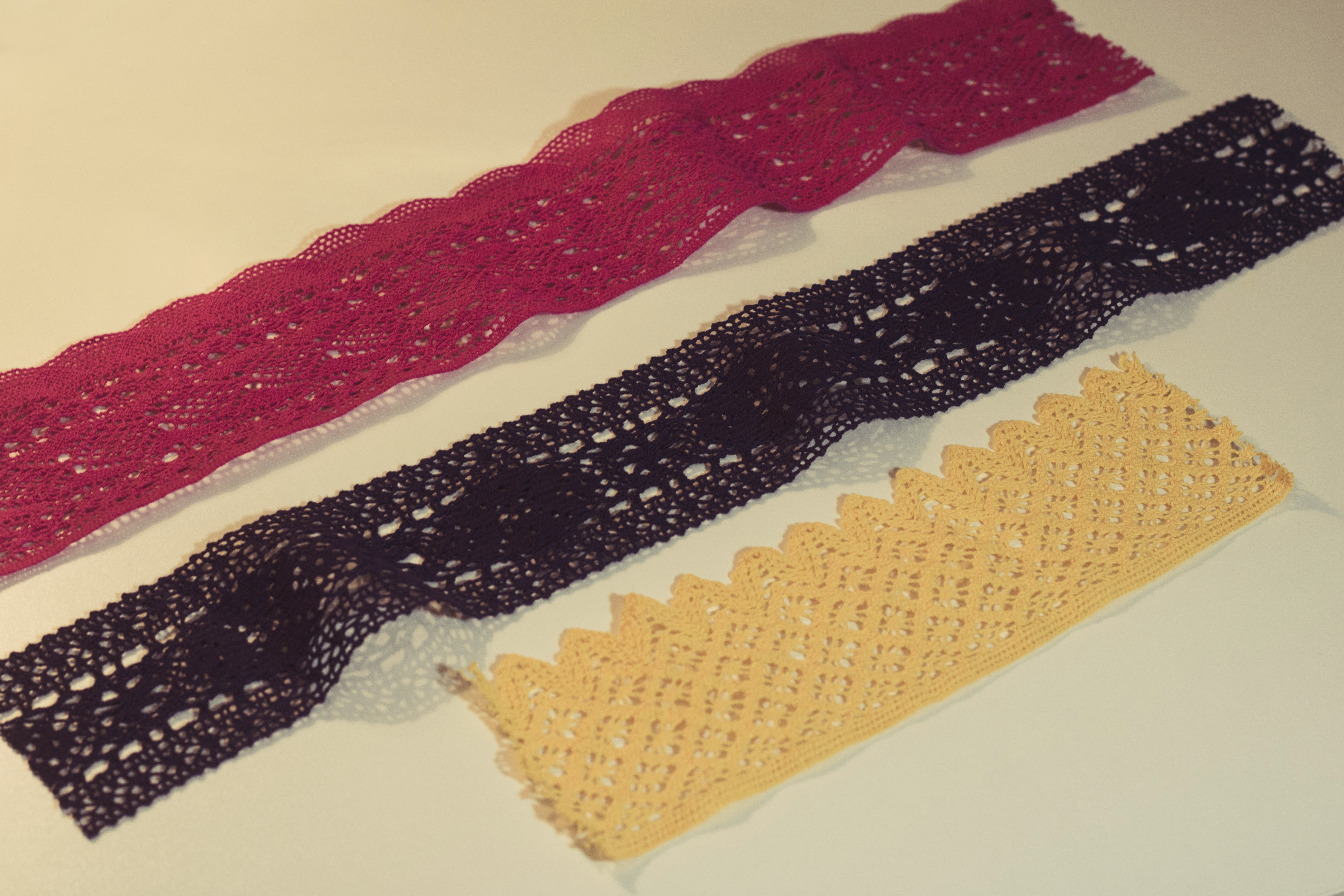 Przygotowanie koron jest bardzo proste! Kolorowe kawałki koronki trzeba pociąć na paski i zaszyć. Jeśli korona ma być nieco rozszerzana od góry brzegi ścinamy lekko pod kątem. Niestety szyć trzeba bardzo precyzyjnie, nie możecie nic robić na zakładkę. Zszyte kółeczka naciągamy na szklany lub plastikowy pojemnik i bardzo obficie spryskujemy krochmalem w sprayu (do kupienia w każdej drogerii). Tak przygotowaną koronę najlepiej wysuszyć teraz w pobliżu kaloryfera albo na słońcu.