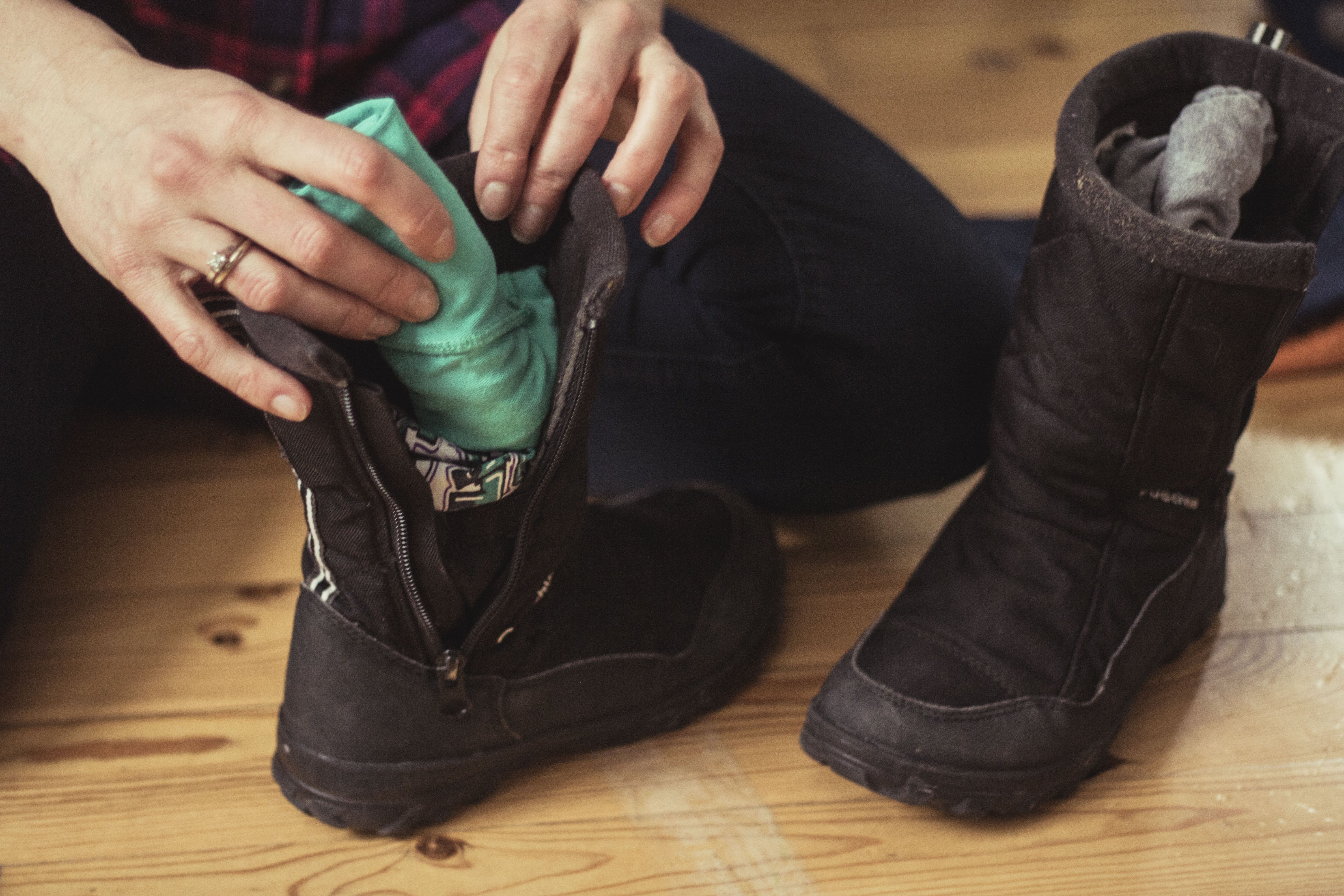 Patent pewnie znany każdemu, ale warto nauczyć też dzieci: wielkie, zimowe buciory oraz buty narciarskie wyładowujemy skarpetami – to dobrze zrobi i butom (nie będą się spłaszczać) i walizce, bo zoptymalizujemy nieco wykorzystanie przestrzeni.
