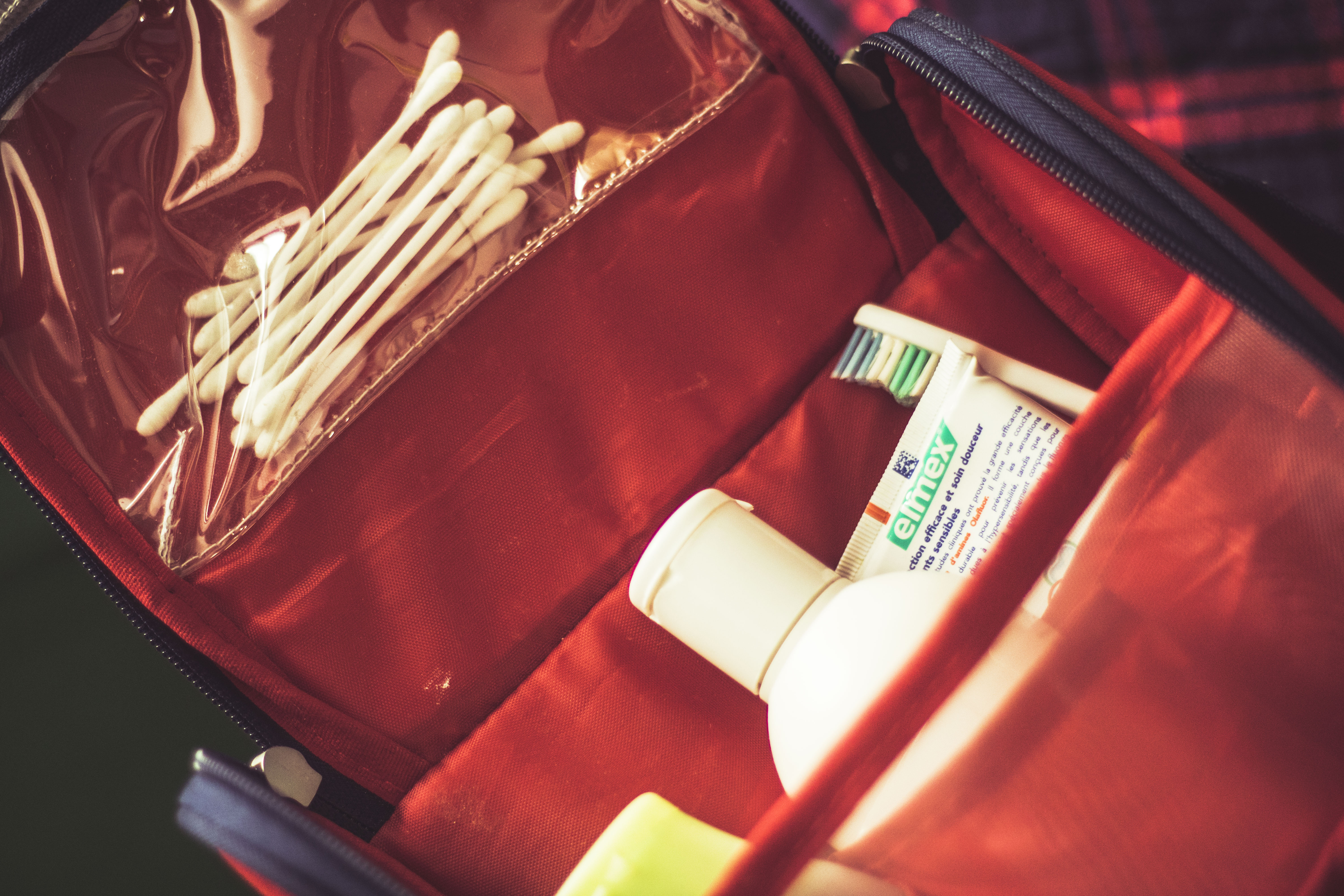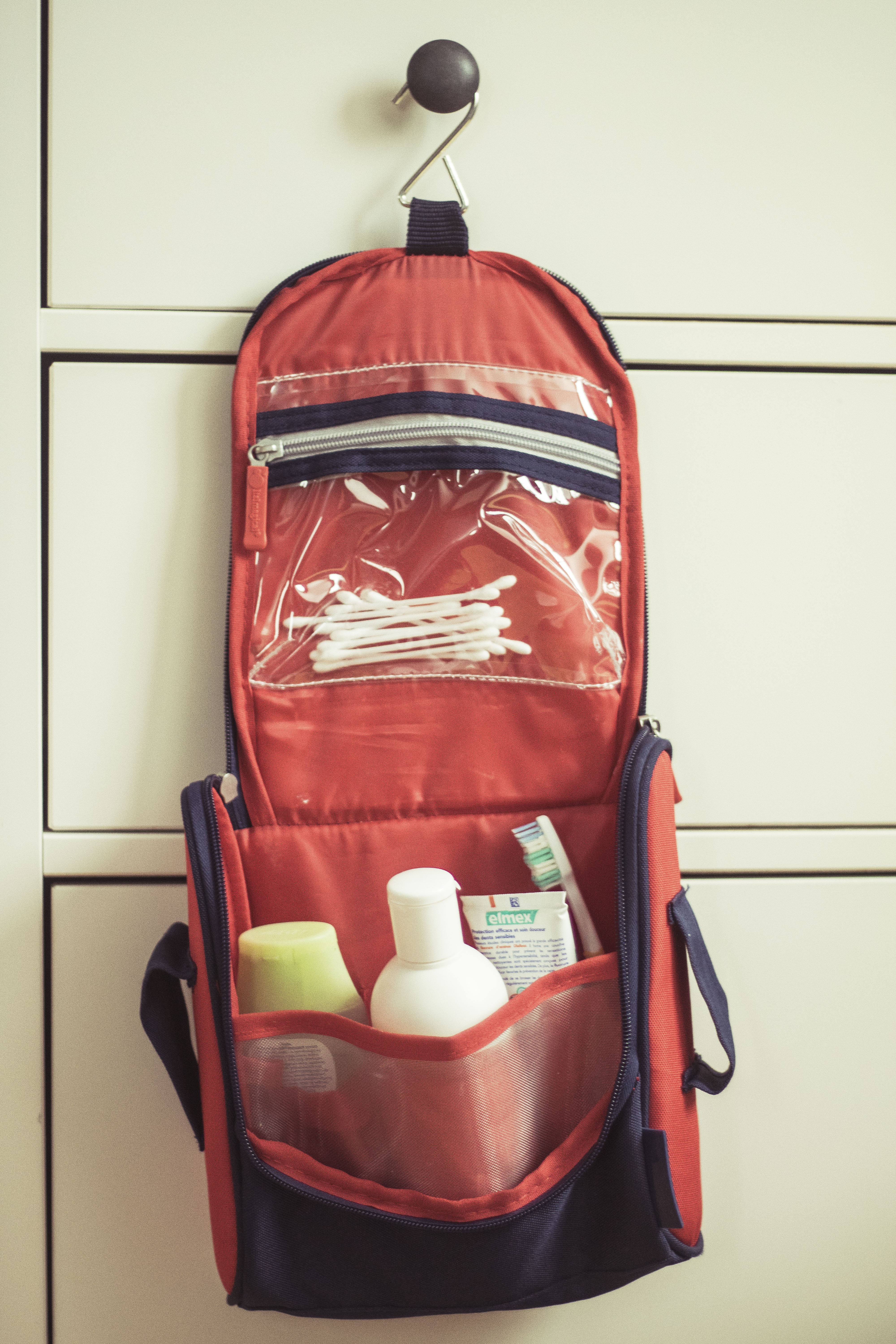 W mojej walizce jest też osobna torba na przybory łazienkowe – to super rozwiązanie. Również dlatego, że przypina się ją na zewnątrz walizki, więc nawet jeśli coś z kosmetyków będzie przeciekać, to nie poplami ubrań. Oczywiście nie musicie wcale kupować walizki – można przecież do zwykłej kosmetyczki zamocować uchwyt do wieszania i gotowe. Przyborów nie trzeba wtedy wypakowywać (zresztą zwykle nie ma na to miejsca) – każdy ma swoje kosmetyki w jednym miejscu i nic się nikomu nie pomiesza.