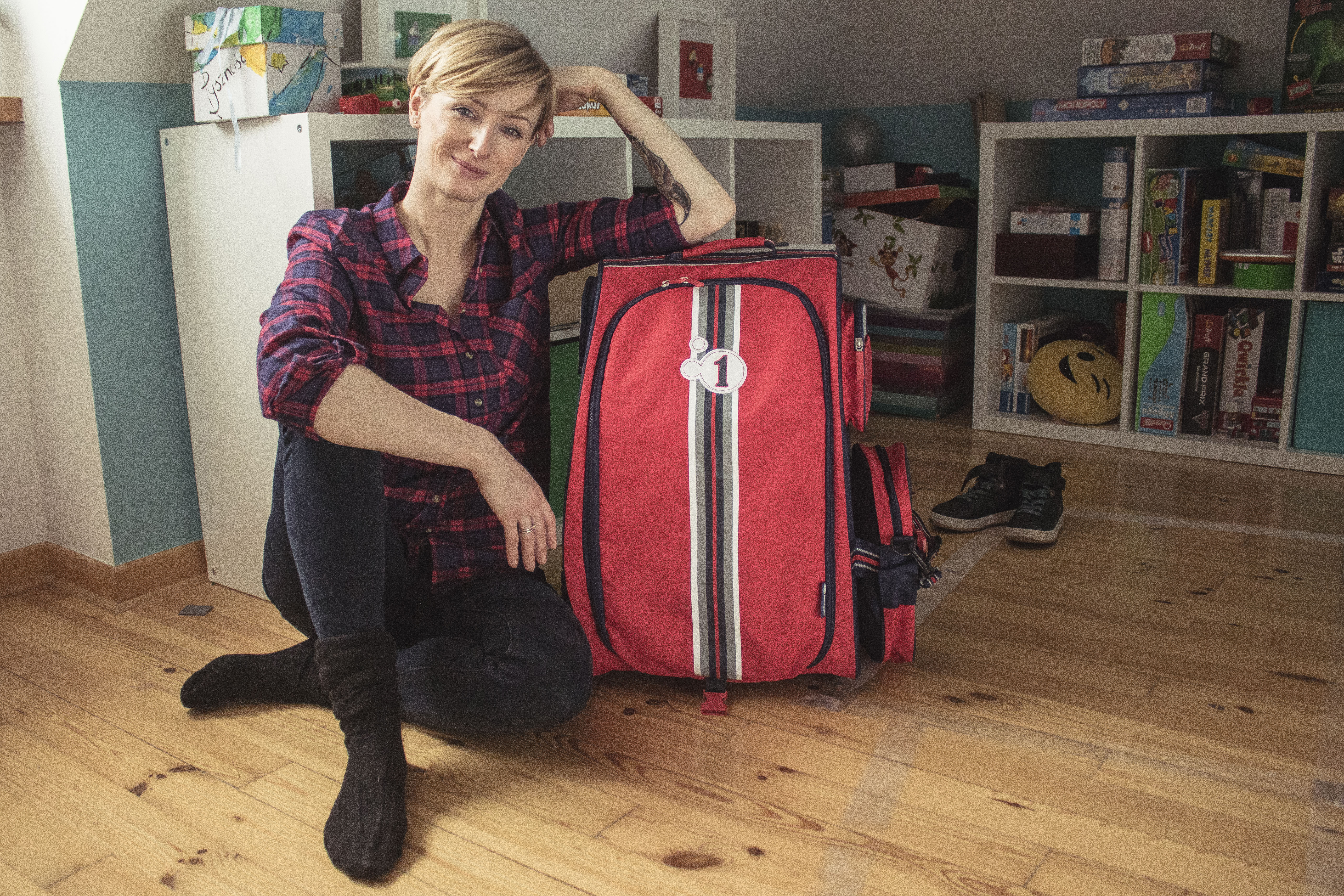 W zeszłym roku kupiłam Rysiowi walizkę specjalnie dla dzieci. Ma ona kilka półek, dzięki którym nie trzeba jej rozpakowywać: wystarczy otworzyć, a wszystkie rzeczy są ułożone, na wyciągnięcie ręki. Specjalna siatka oddziela buty, z boku można zamocować podręczną torbę, jest też worek na brudne ubrania. Walizka jest oczywiście na kółkach, żeby młodzież nie musiała za dużo dźwigać.