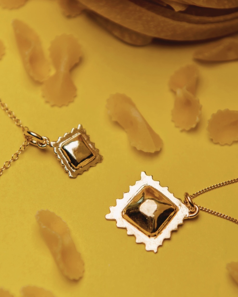 Co powiecie, na złote kolczyki w kształcie ziarenka kawy [KLIK], wisiorek raviol0 [KLIK] albo cornetto na łańcuszku? To co prawda rogal świętomarciński, ale wygląda toczka w toczkę jak włoski przysmak śniadaniowy. W Hetman Jewelery znajdziecie takie włoskie „smaczki”, a także coś dla miłośników innych potraw takich jak sushi, precle, pierogi czy nawet… kopytka!