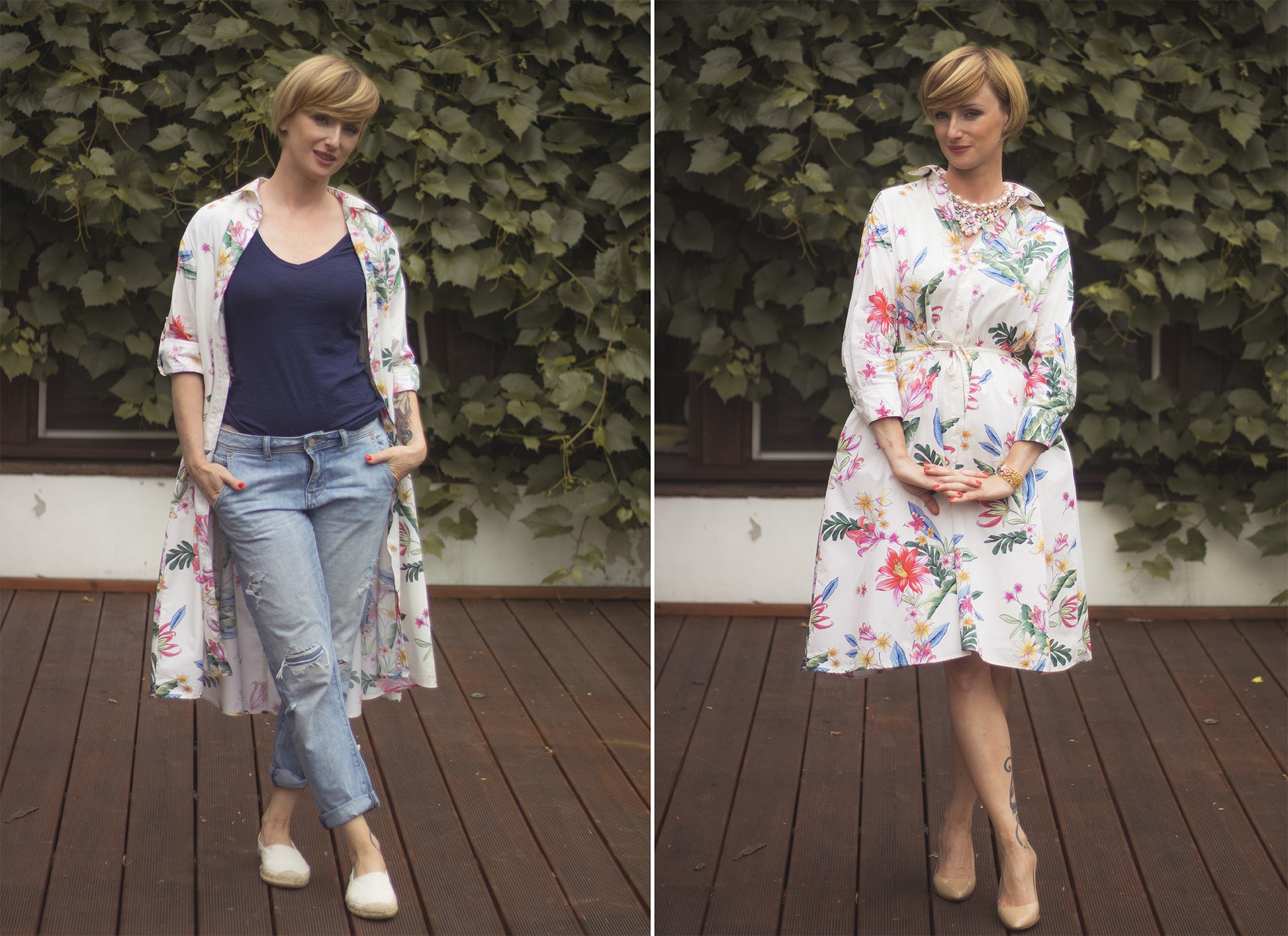 Wersja codzienna to „narzutka” na zwykły t-shirt i boyfriendy. Jeśli chcę dodać trochę „pazura” do takiej zwykłej stylówki z espadrylami ta sukienka idealnie spełnia swoją rolę – na luzie i z przymrużeniem oka.