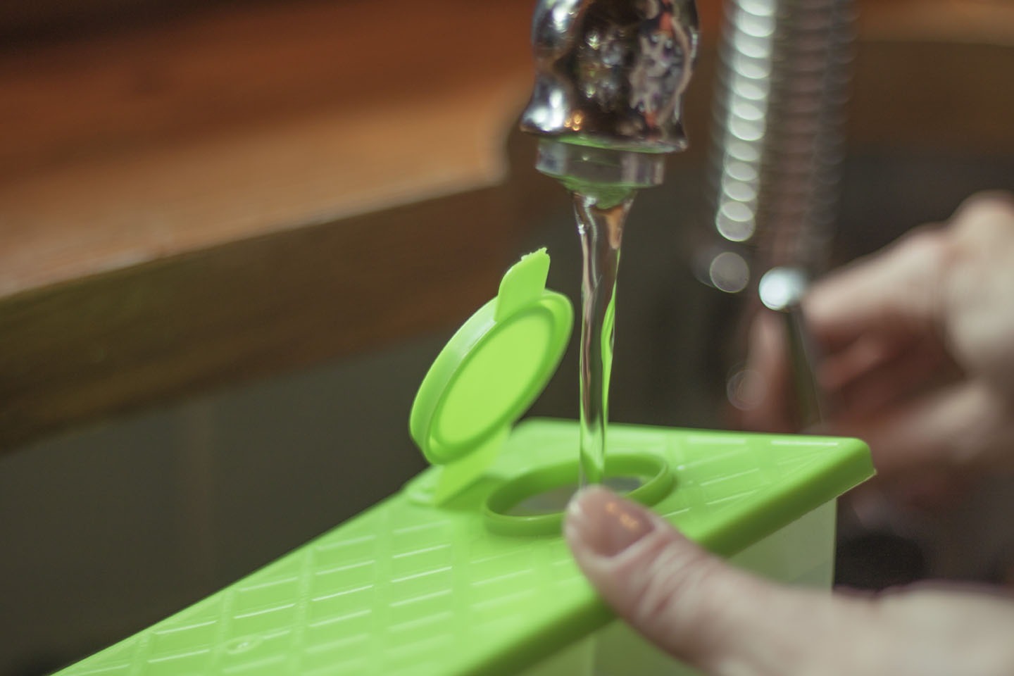 Zawsze, ale to zawsze kiedy wstawiałam do zamrażarki tackę na kostki lodu jakaś część wody wylewała się po drodze, albo już w samej szufladzie zamrażarki. Dostawałam szału i nie pomagały nawet foremki z przykrywką, bo skutecznie udawało mi się rozlewać wodę w czasie zasuwania przykrywki. Wreszcie znalazłam coś dla takich roztrzepanców jak ja: foremkę na kostki lodu z zakykanym „wlewem” przez który wlewam wodę. Potem zamykam zaworek i gotowe – nic się nie rozlewa i nie ulewa, a żeby wyjąć kostki