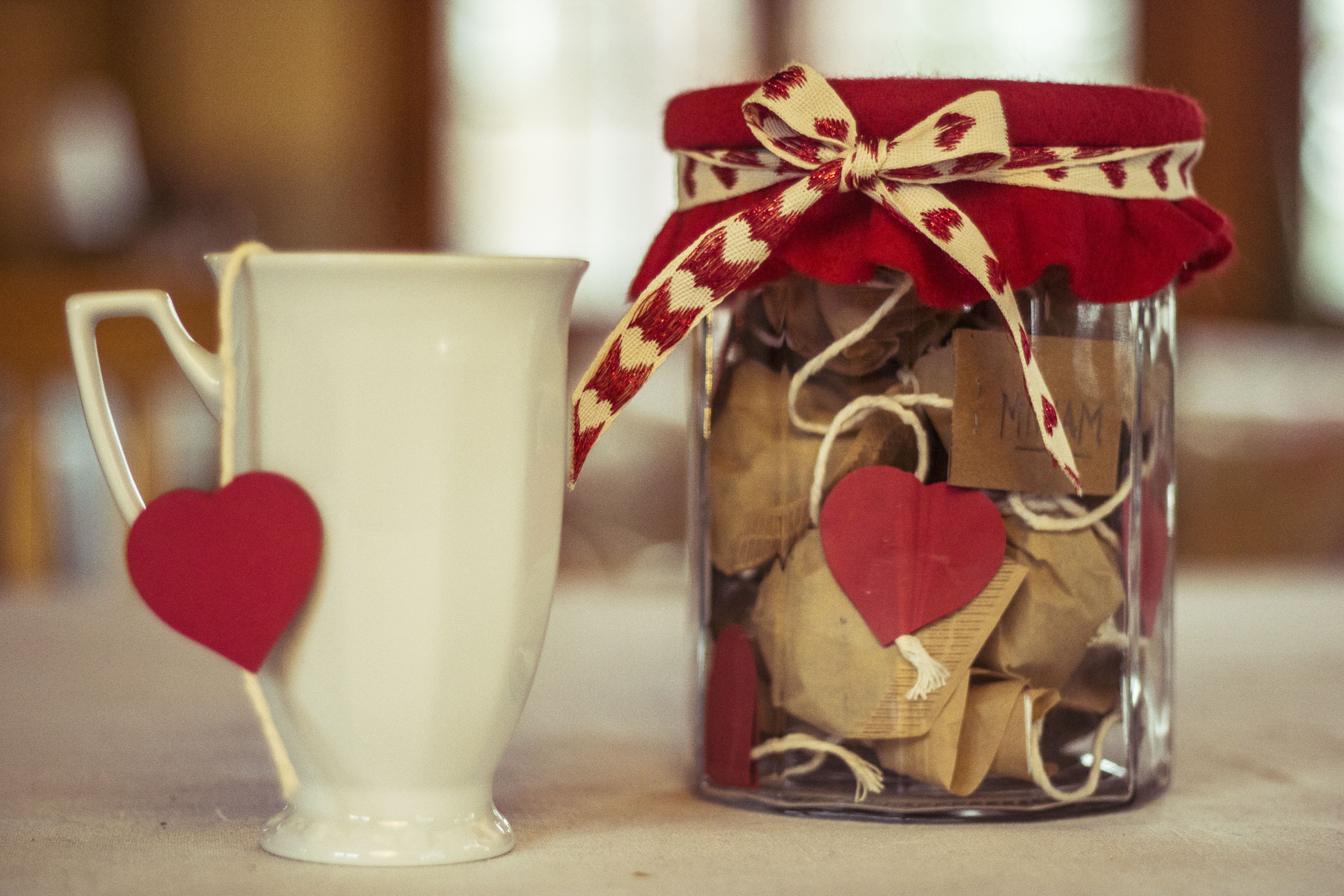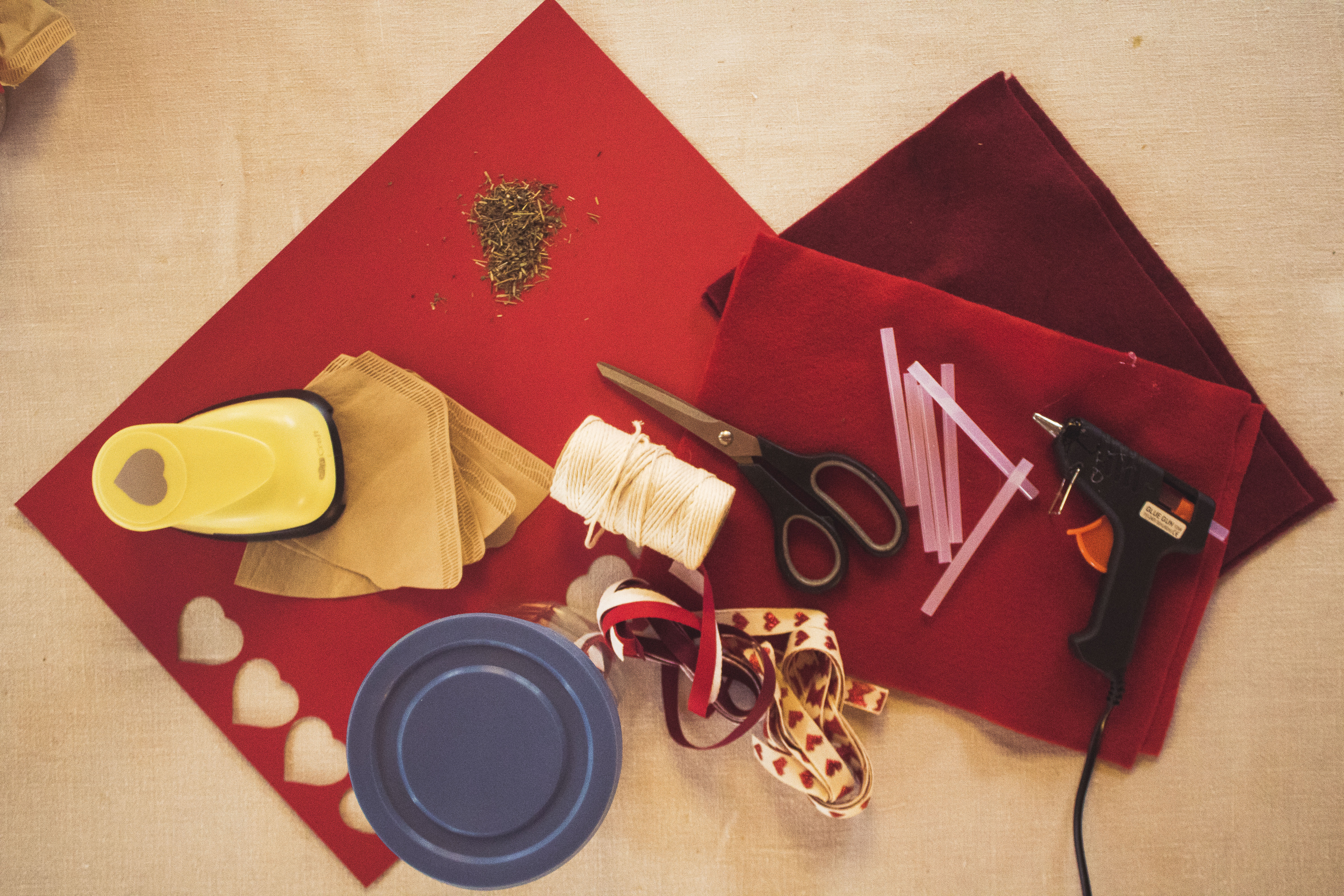 Będzie Wam potrzebny duży słój (ten jest z Tiger Copethagen), bawełniany, cienki sznurek, filtry do kawy i czerwony karton. Ewentualnie jeszcze wykrawacz w kształcie serduszka (albo gwiazdki, albo co tylko chcecie – duży wybór jest w Empikach, które mają dział DIY). No i oczywiście wkład, czyli herbata – tu możecie albo kupić coś gotowego, albo samodzielnie skomponować smaki dokładając do czarnej herbaty cynamon, goździki albo suszone owoce.
