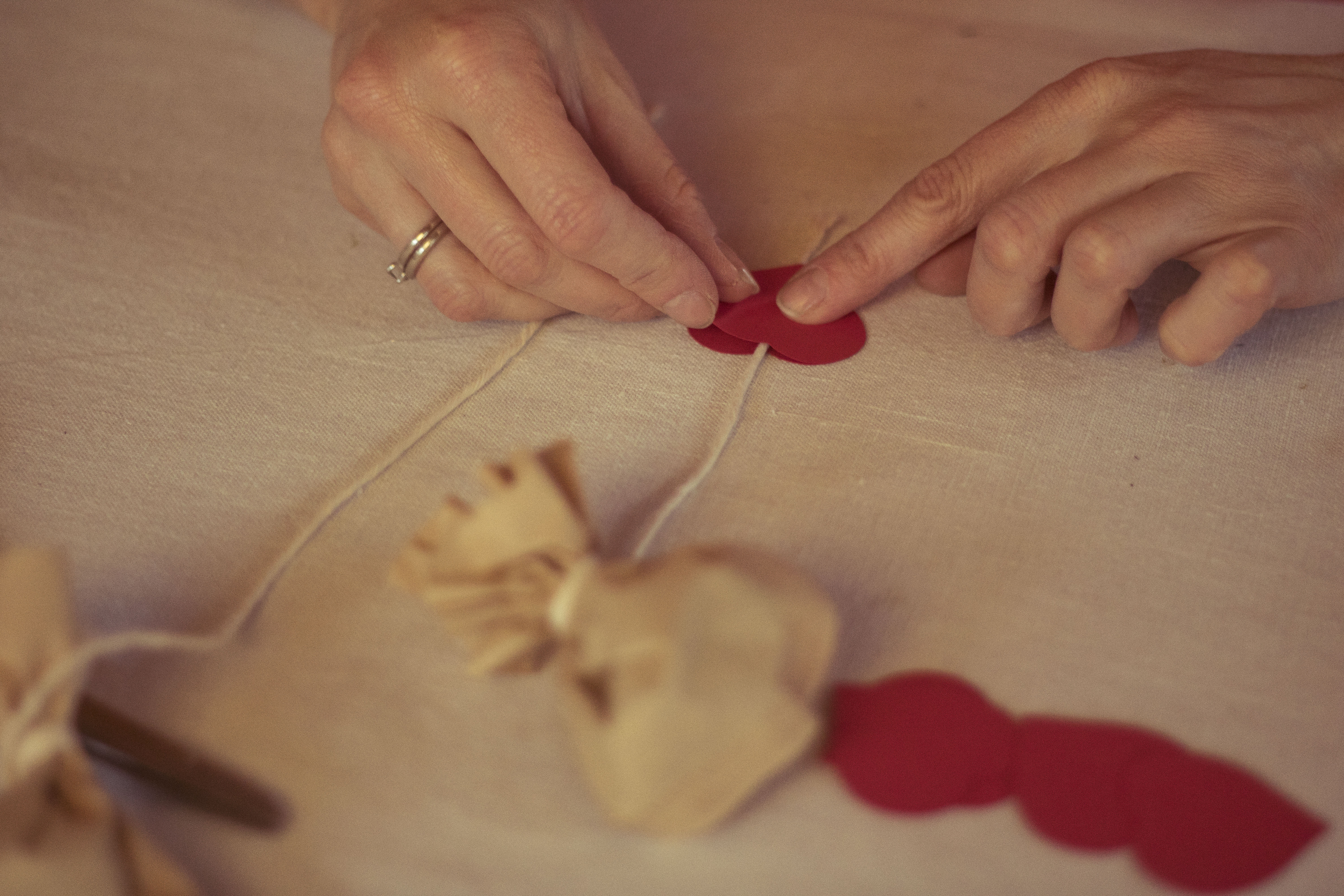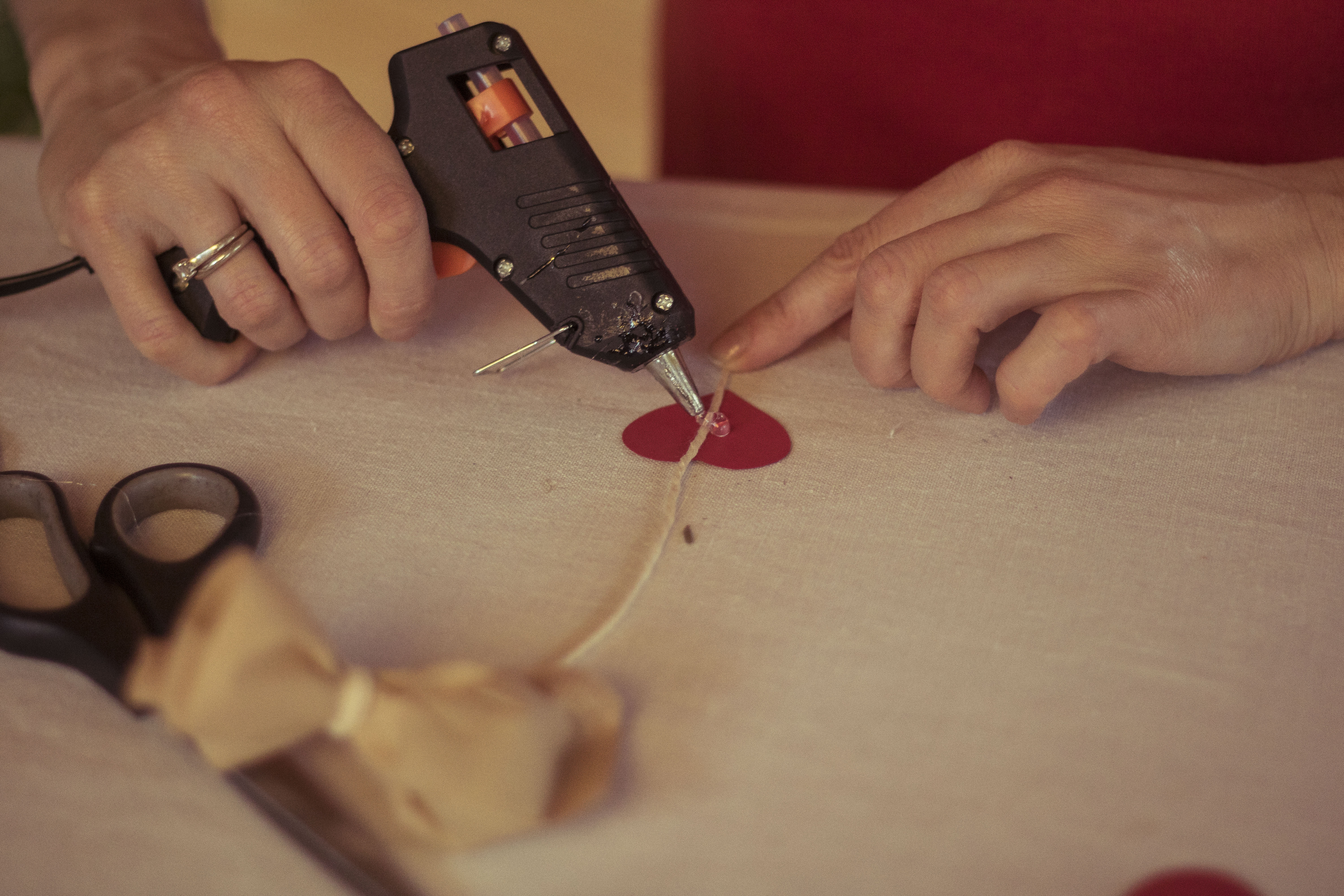 Herbatę trzeba teraz przesypać do przyciętych filtrów do kawy (im będą cieńsze, tym lepsze) i starannie zawiązać je sznurkiem tworząc kuleczki. Potem odmierzacie kawałek sznurka, tak, żeby jego koniec wystawał na 3-4 centymetry z kubka a na drugim końcu za pomocą kleju w pistolecie sklejacie ze sobą dwa kartonowe serduszka tak, by „złapały” sznurek.