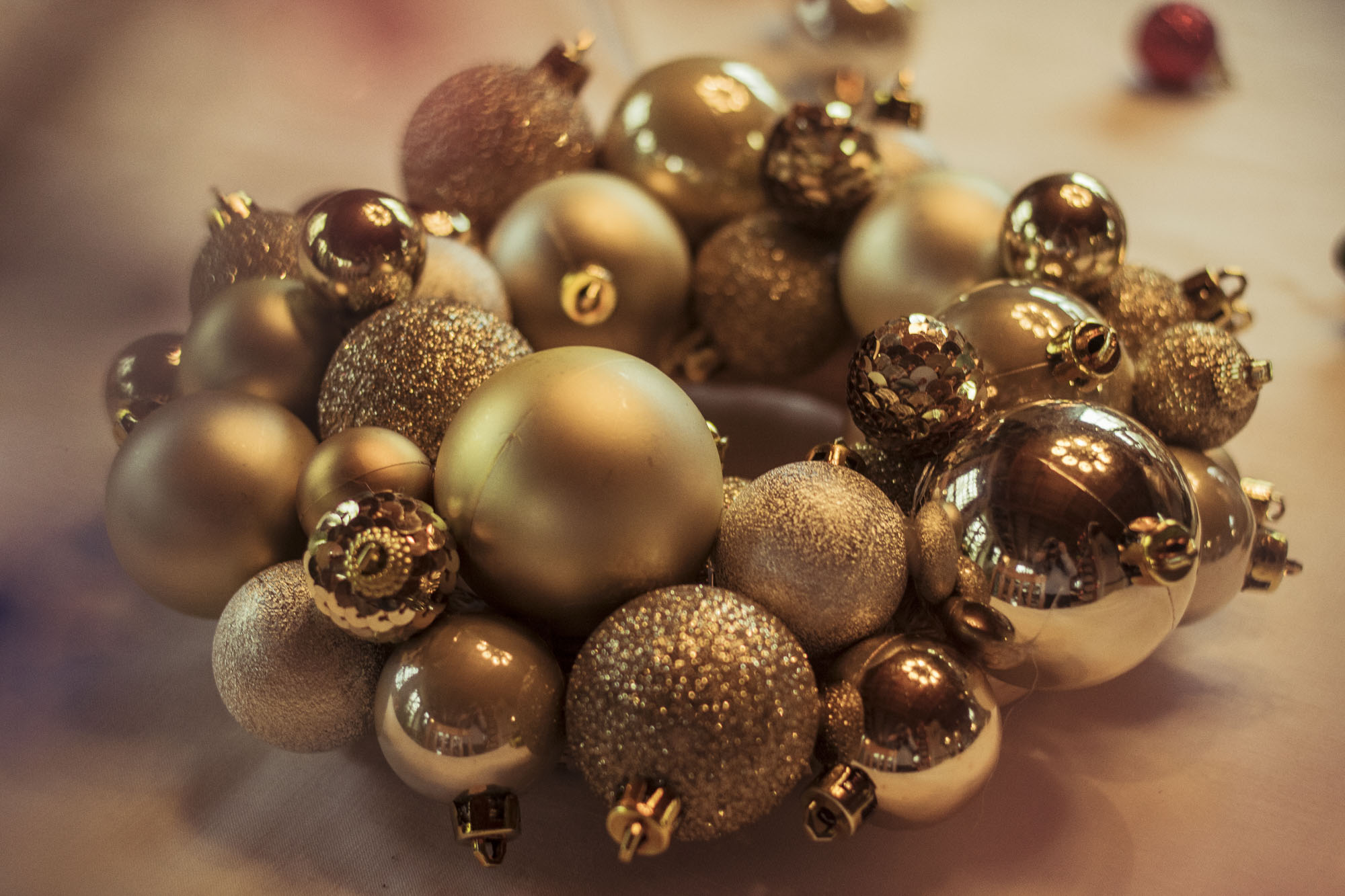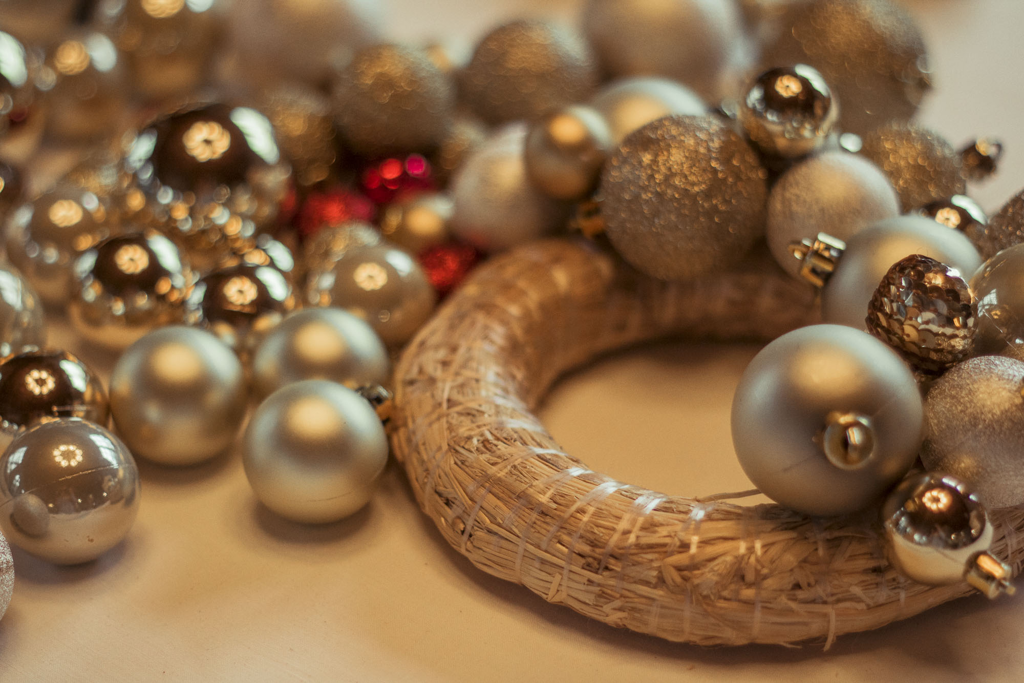 Żeby było jasne – w plastikowych nie ma nic złego. Chociaż ja generalnie wolę szklane bombki, to jednak te z plastiku są w przypadku wieńca bardziej praktyczne. Będzie mniej strat 🙂
